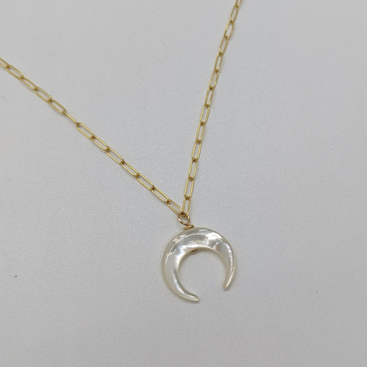 Mother of Pearl Crescent Paperclip Necklace