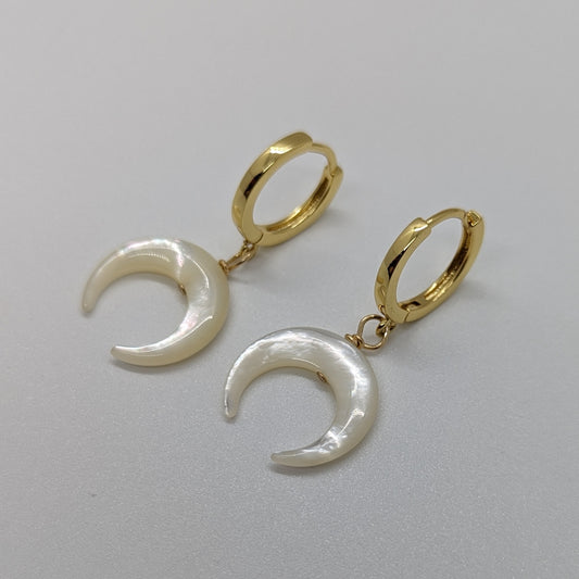 Mother of Pearl Crescent Huggies Earrings