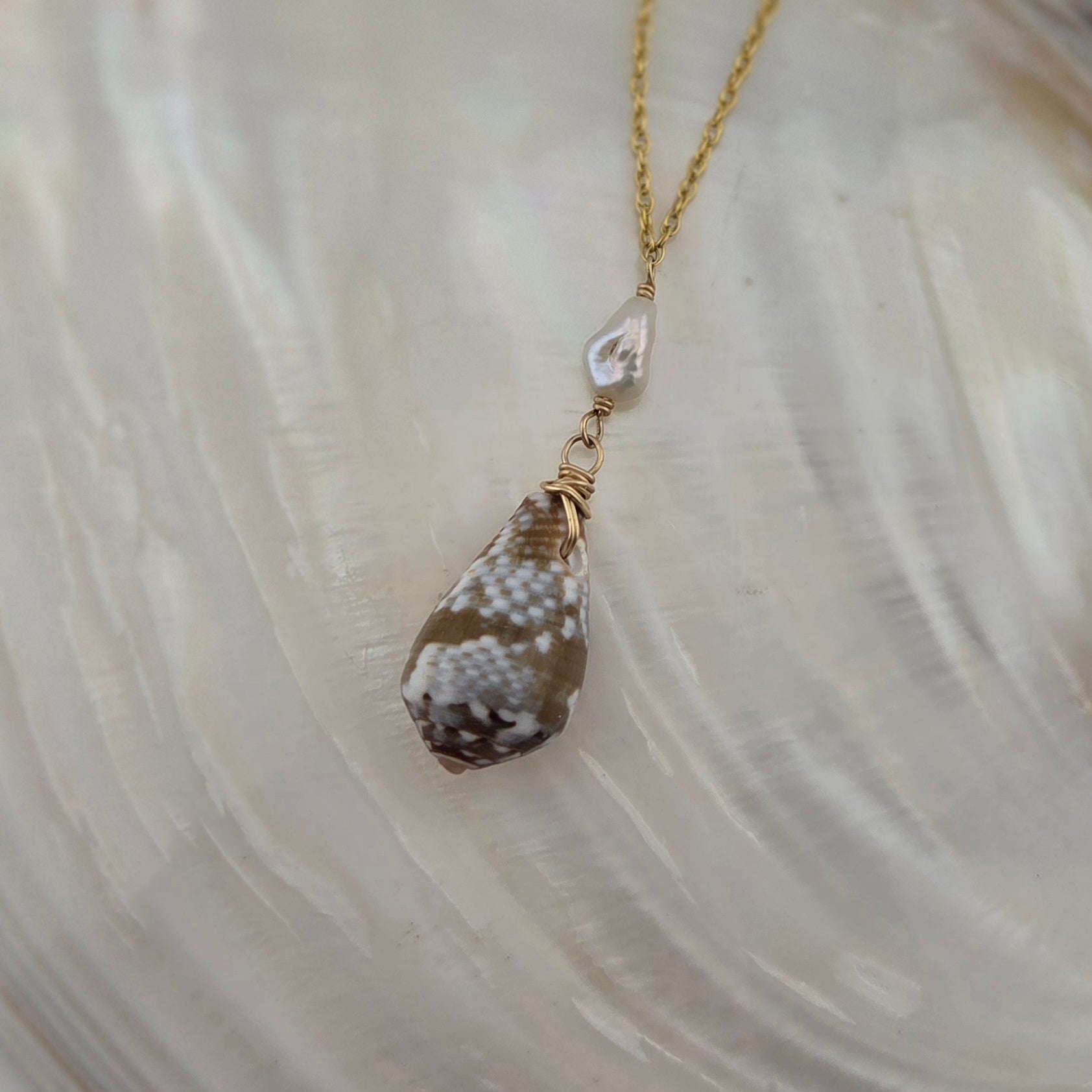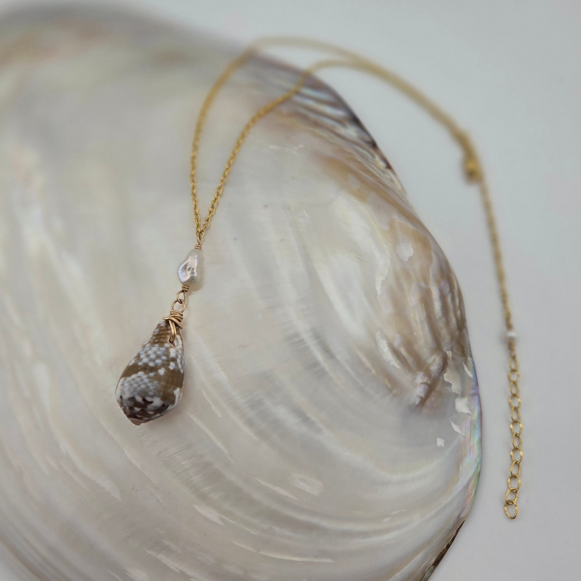 Cat Cone Shell Necklace with Keshi Pearl